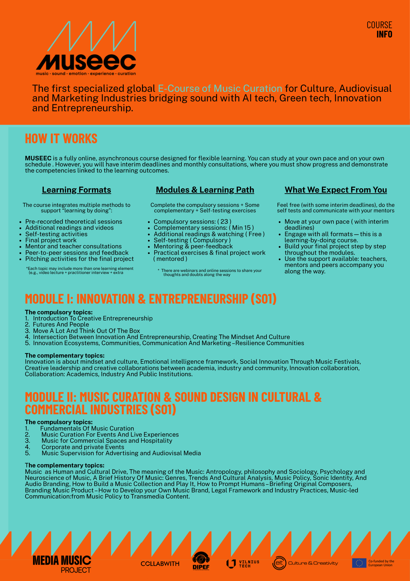 MUSEEC is a digital educational course that goes beyond training—it’s a shift in how we understand, apply, and value music and sound. Blending creative depth, a formal, university-backed structure, and clear professional purpose, it reframes sound as a strategic, emotional, and cultural capability within today’s industries.